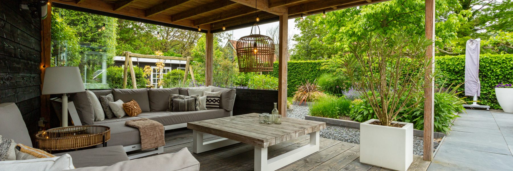Het binnenleven naar buiten. Koken op de Green Egg, lang natafelen op het terras en voor de kinderen een speeltoestel van natuurlijke materialen. Een groene oase voor alle bewoners van het huis, te midden van rustgevende rechte zichtlijnen.