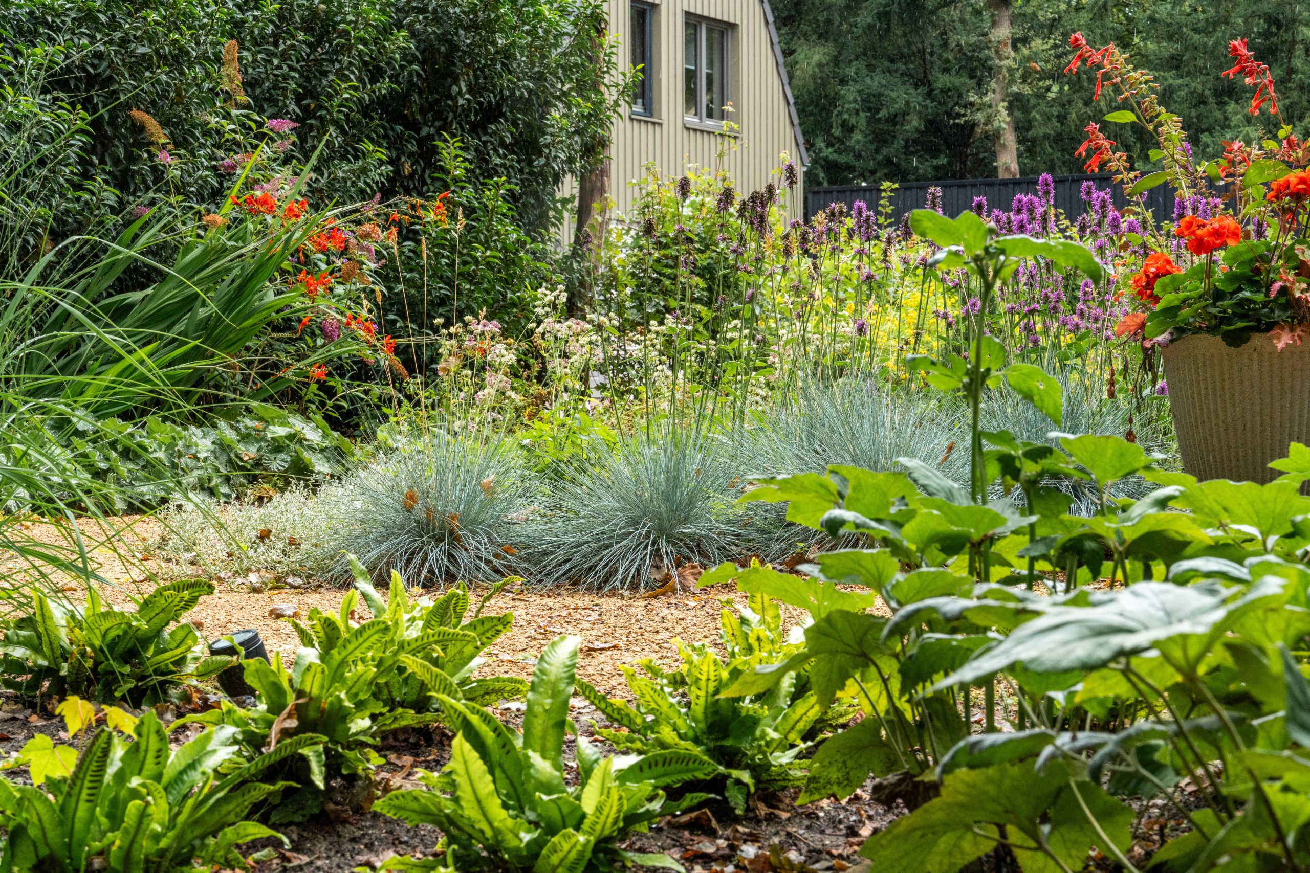 Door zorgvuldig materiaalgebruik en passende beplanting is een buitenruimte ontstaan die recht doet aan het verleden, maar tegelijkertijd klaar is voor het wonen van nu. Zo versterken groen, architectuur en omgeving elkaar op een vanzelfsprekende manier.