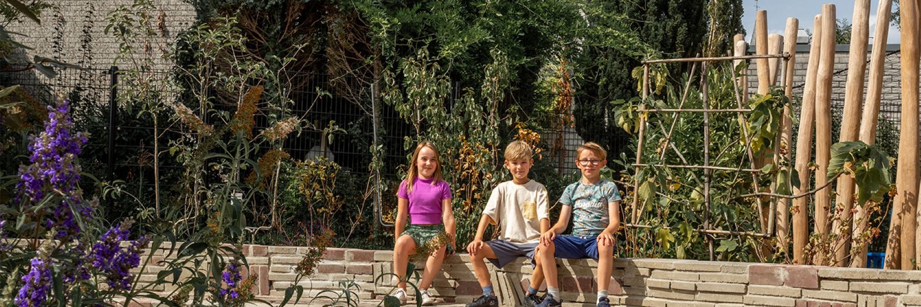 Dit groene schoolplein in het Oude Dorp van Houten, ademt het gevoel van een levendig dorpsplein. Het groen, gecombineerd met speelelementen voor alle leeftijden maakt het tot een plek waar spelen, leren en ontmoeten samenkomen. In het open theater is het heerlijk bijpraten en je geeft er de beste optredens. Het is gebouwd met de stenen van het oude schoolplein.